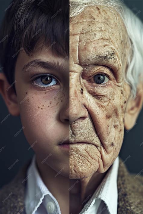Premium AI Image | A male face split in two young boy n elderly 80 year